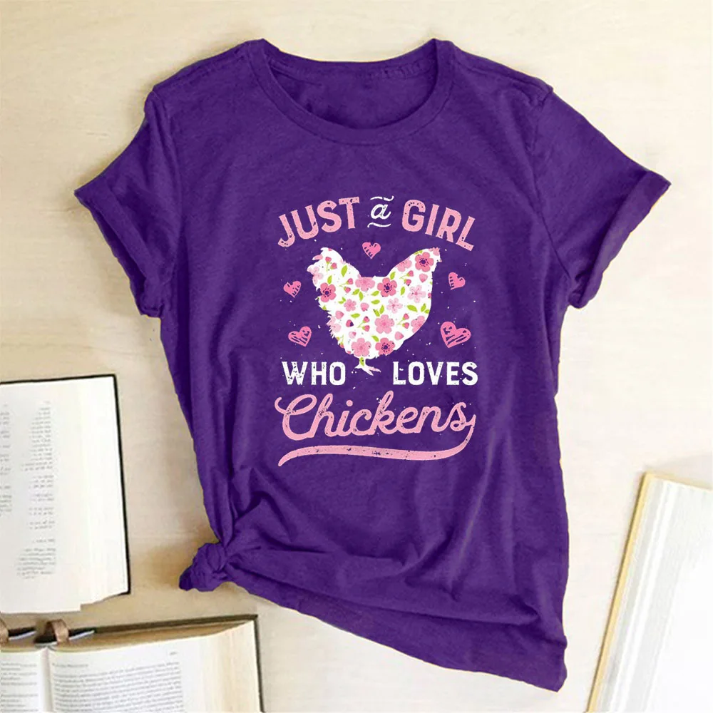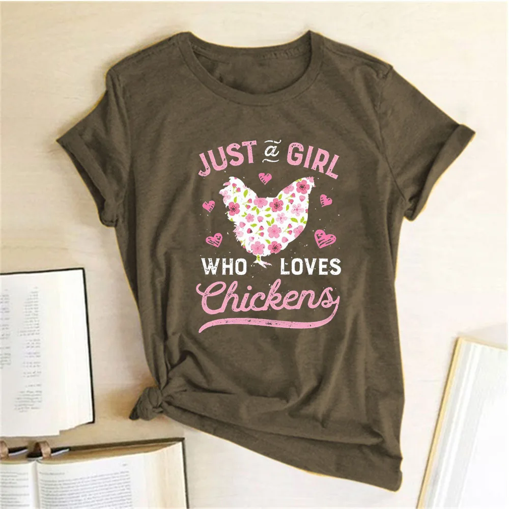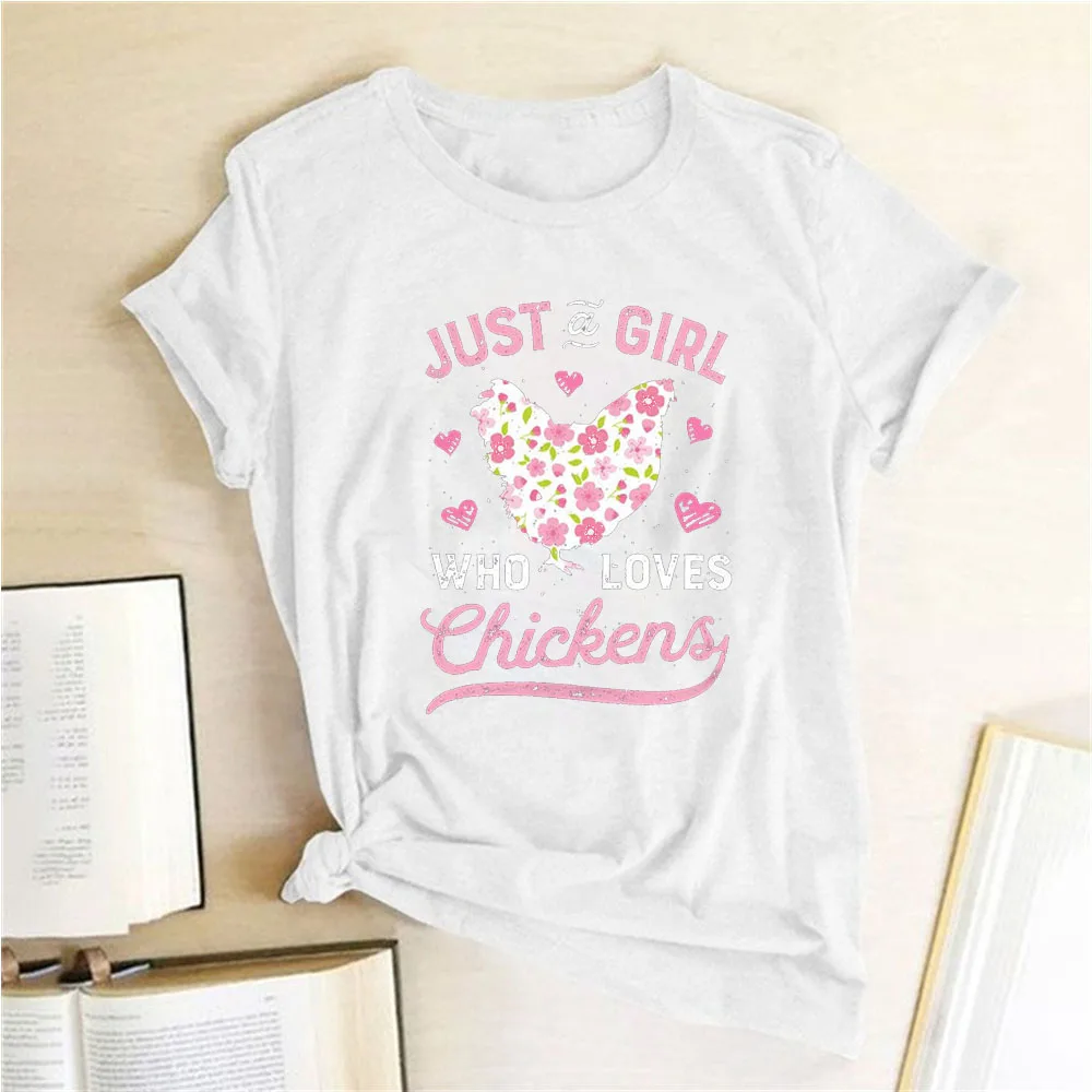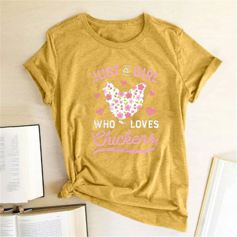 Женская футболка с принтом «просто девушка, которая любит цыплят», Забавные футболки Harajuku с коротким рукавом, летняя модная футболка Kawaii, топы, уличная одежда