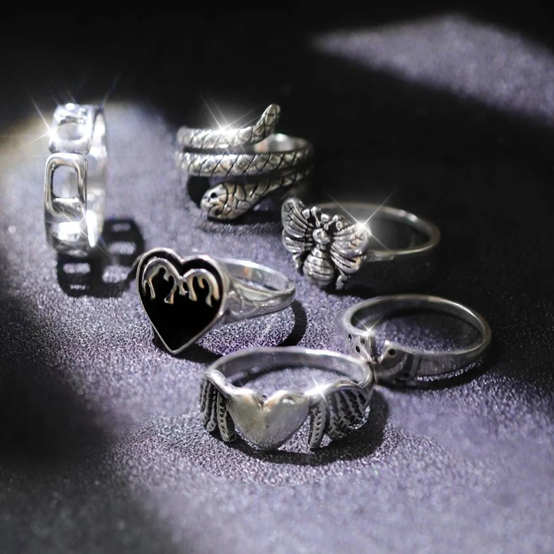 Женское кольцо в виде крыльев, Винтажное кольцо со змеиным принтом