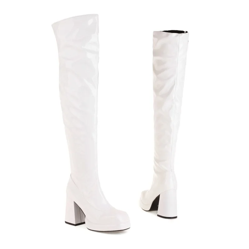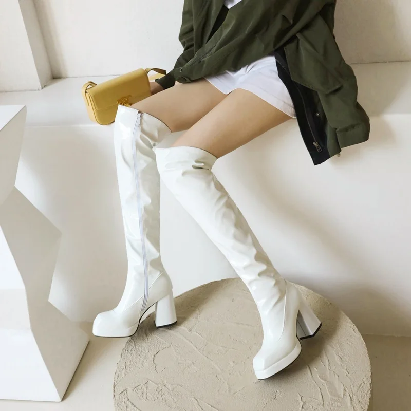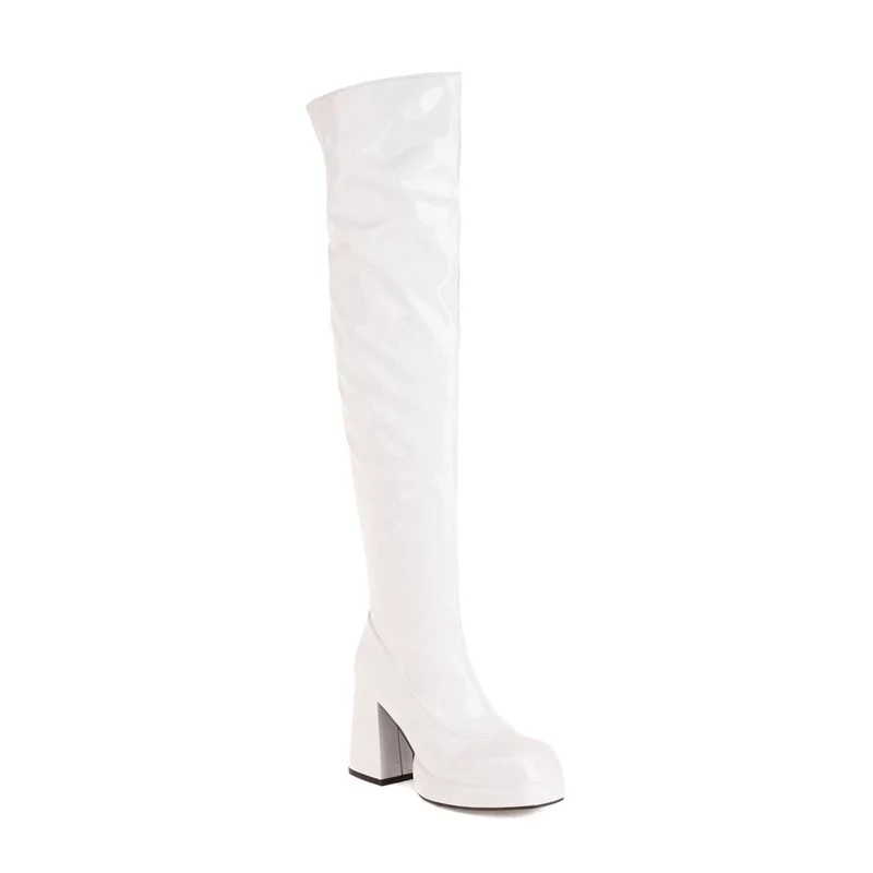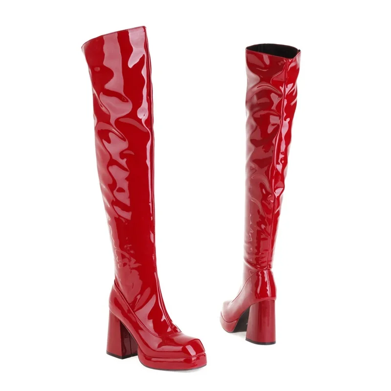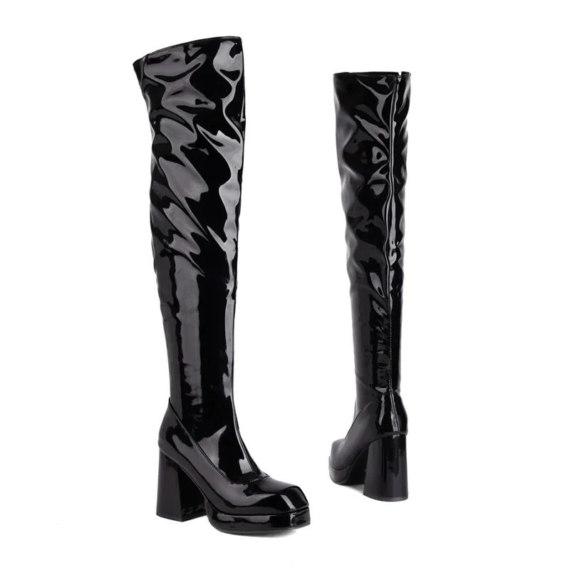 Женские ботфорты из лакированной кожи, облегающие привлекательные Зимние Сапоги выше колена на платформе, новинка 2021