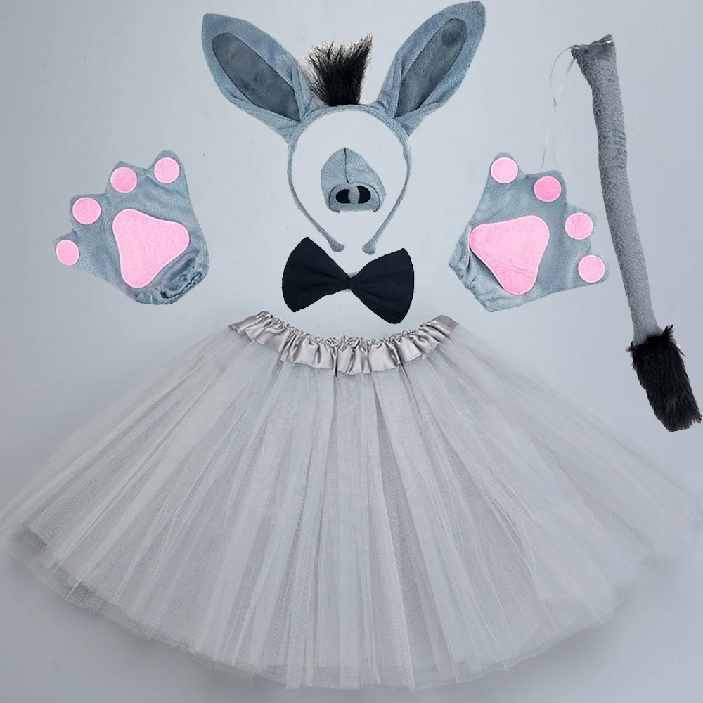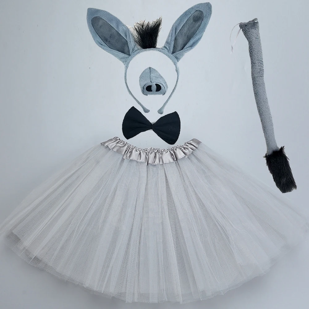 Костюм осла джунглей для взрослых и детей, реквизит для косплея с длинными ушами, хвостом и луком, пасхальный Пурим для вечеринки
