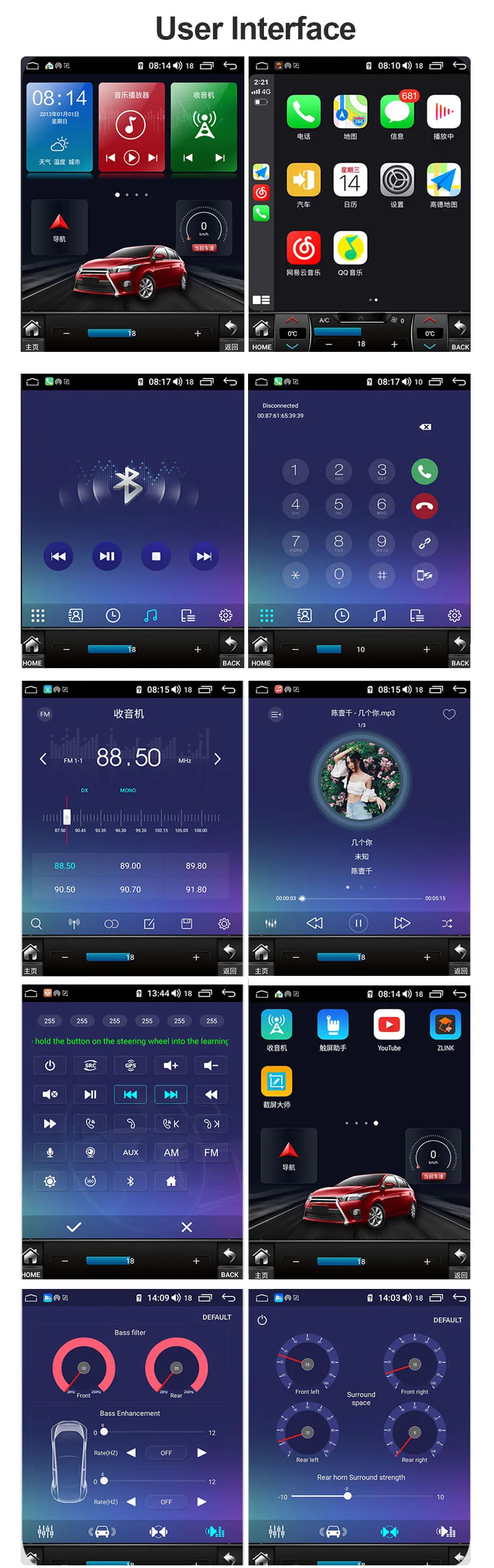 1. Встроенный беспроводной carplay2. Голосовое управление3. Пользовательское приложение4. Интерфейс HDMI5.360 камера (optinal)6. Качество звука без потерь Bluetooth 5,07. Многоэкранное взаимодействие8.AHD9.Android Auto11. Мощность разрешения: 1920*72012,4 ГБ Оперативная память13. Особенности DSP: может улучшить автомобильное аудио, улучшить качество звука, поддержка объемного 3D звука. Как чип был построен-в этом блоке.
