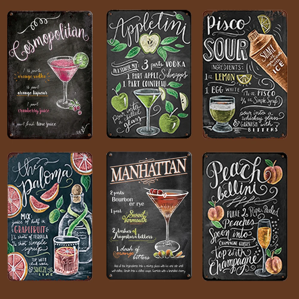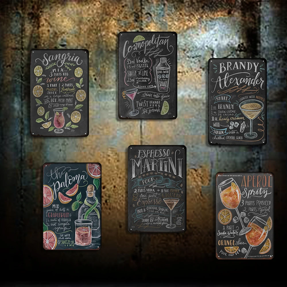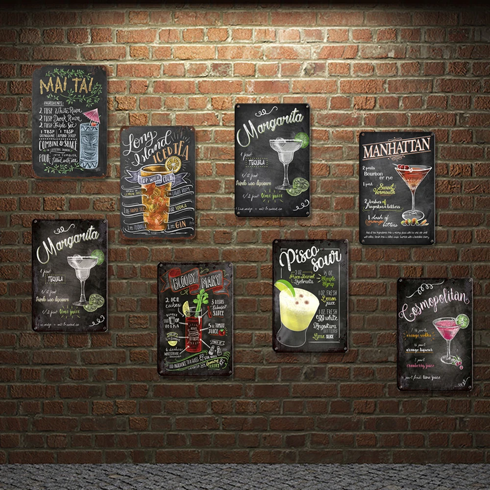 Металлический плакат, Оловянная вывеска, декор для бара, ресторана, кухни, художественные настенные металлические таблички, аксессуары для украшения коктейлей, Мохито, тарелки
