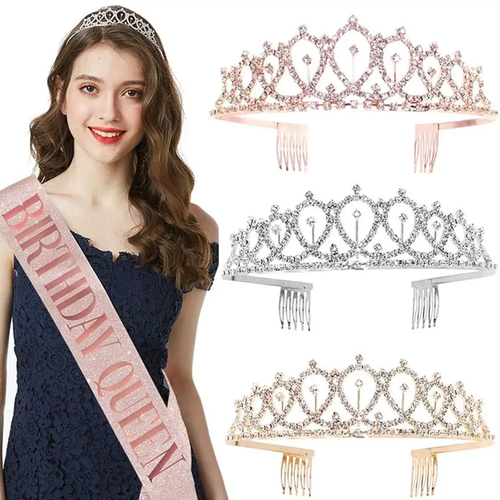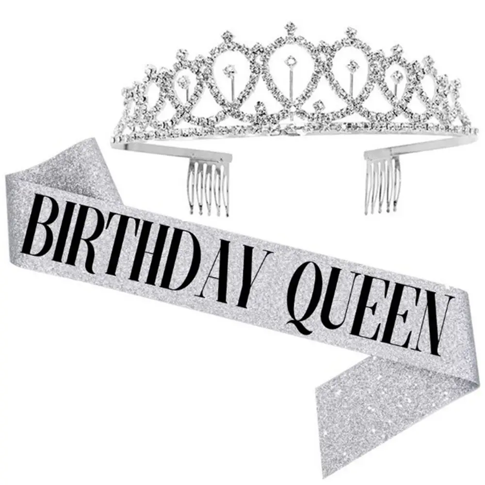 Украшение для дня рождения для девочек, блестящая лента и корона для женщин, 2 шт.компл., стразы, набор с тиарой