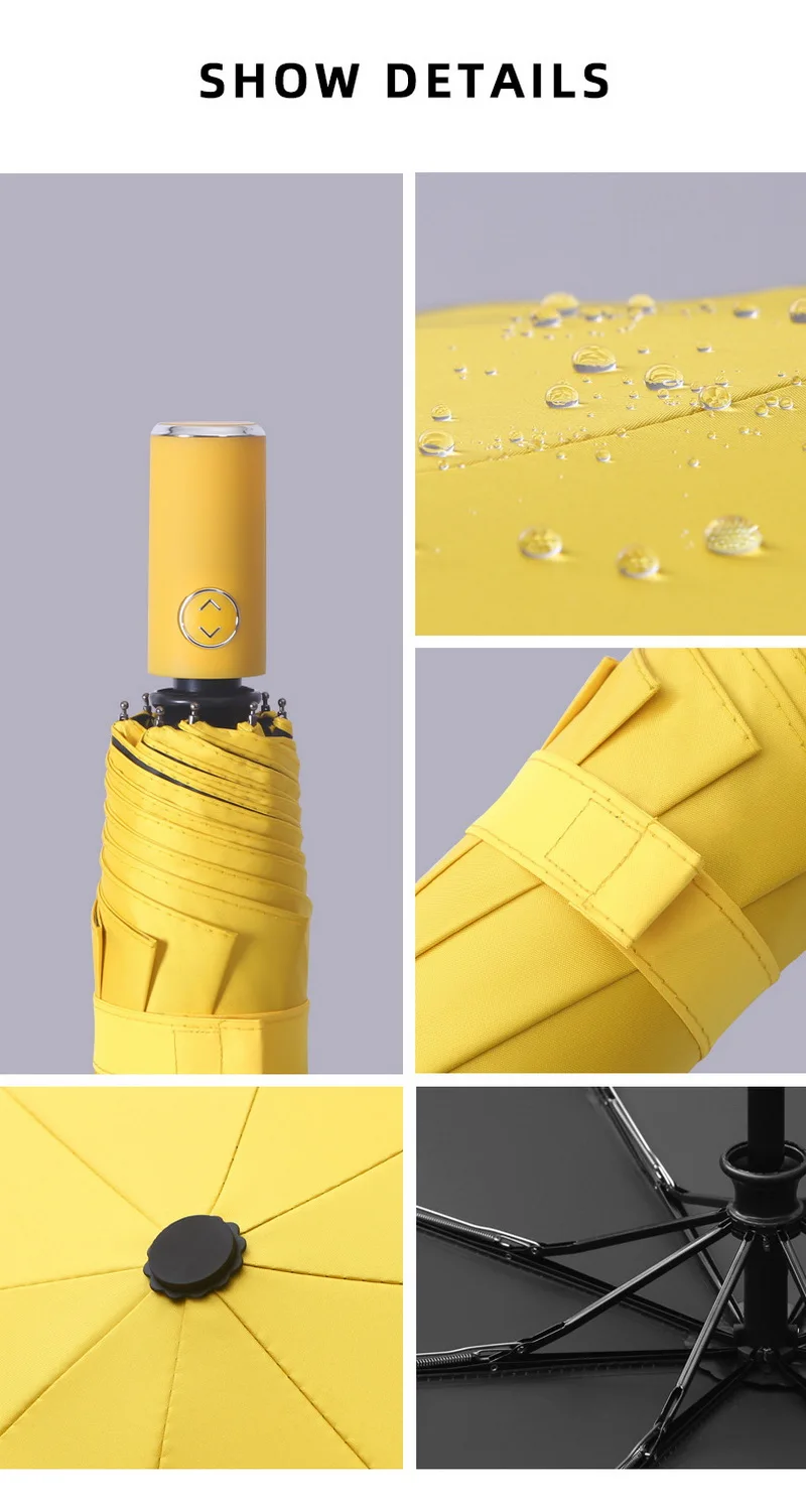 Автоматический складной зонт для мужчин и женщин, ветрозащитные большие уличные зонтики от дождя, черного цвета, для путешествий, бизнеса