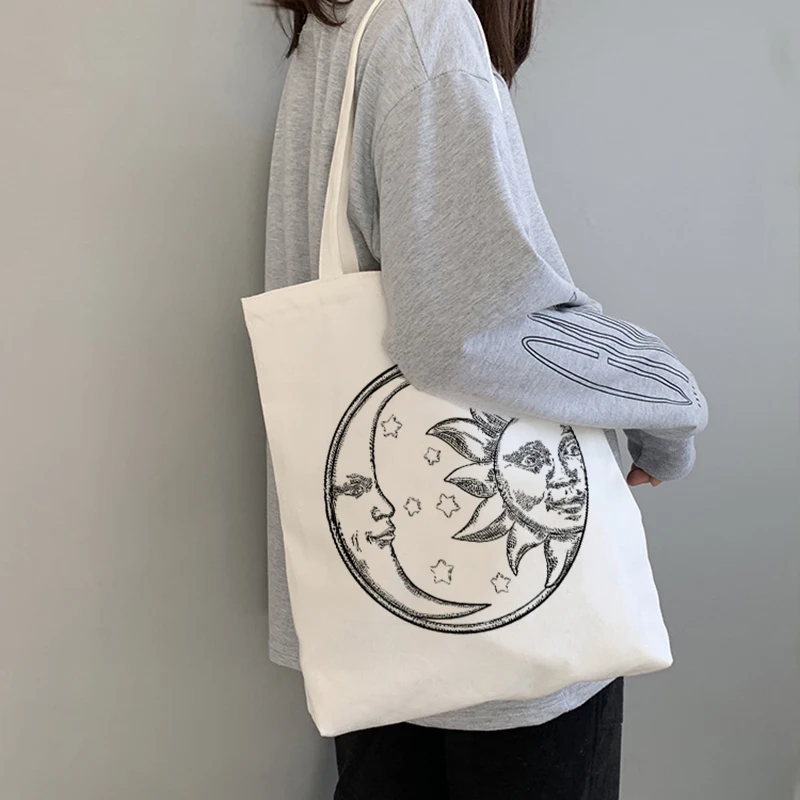 Холщовая Сумка Sun And Moon для женщин, винтажная вместительная сум...