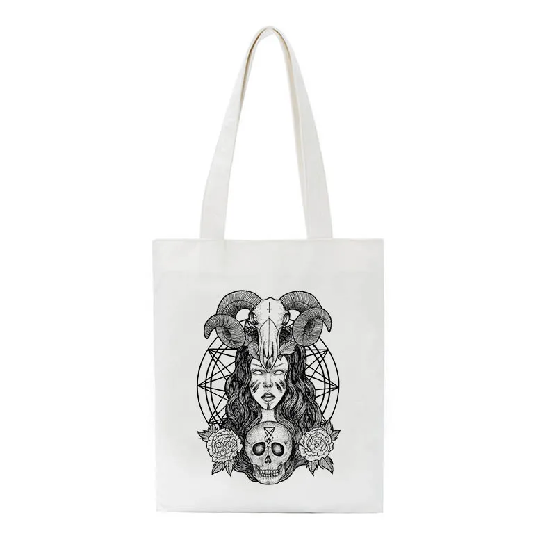 Женская Холщовая Сумка с принтом черепа и надписью, в готическом стиле