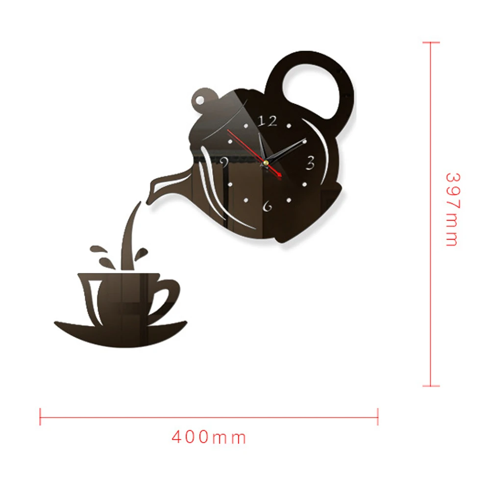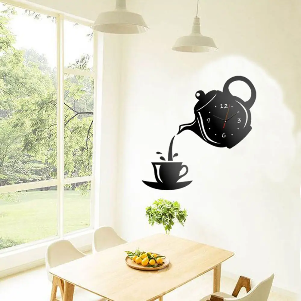 Акриловые зеркальные чашки для кофе, чайник, настенные часы, кварцевый механизм, часы для столовой, гостиной, 3D наклейки, настенные часы, домашний декор, 1 шт.