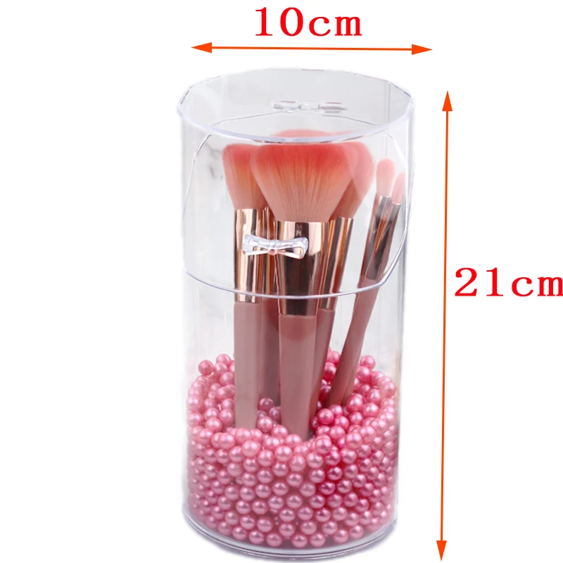 4. Этот акриловый ящик для хранения косметики оснащен бесплатными белыми жемчужинами, чтобы сделать вашу кисть стоящей в вертикальном положении и упорядоченной. Он может вместить 15 ~ 20 кистей разных размеров.