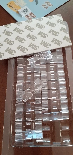 Удобные зажимы ,не хватило одного комплекта.В некоторых местах отклеился. .Пришлось использовать свой двухсторонний скотч.