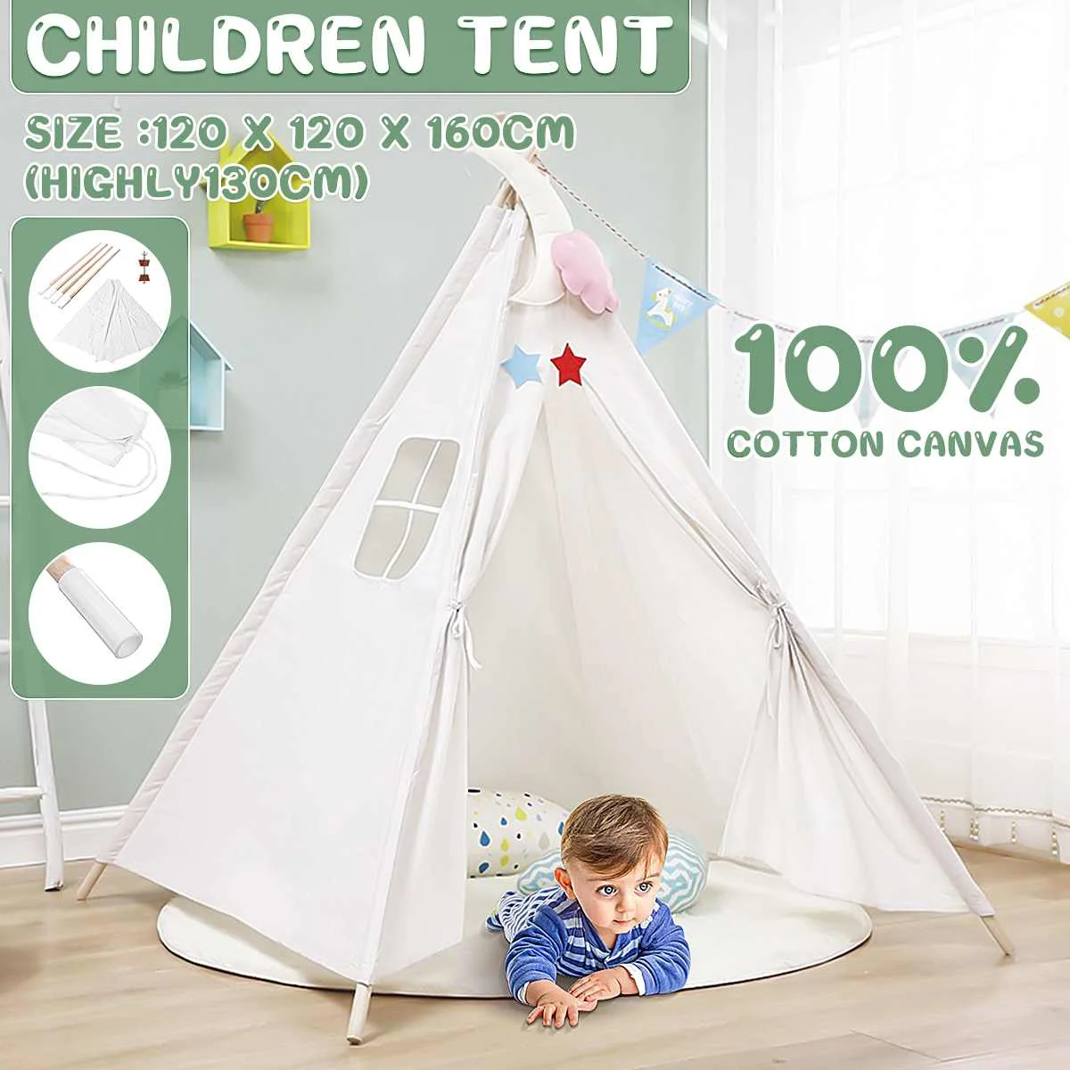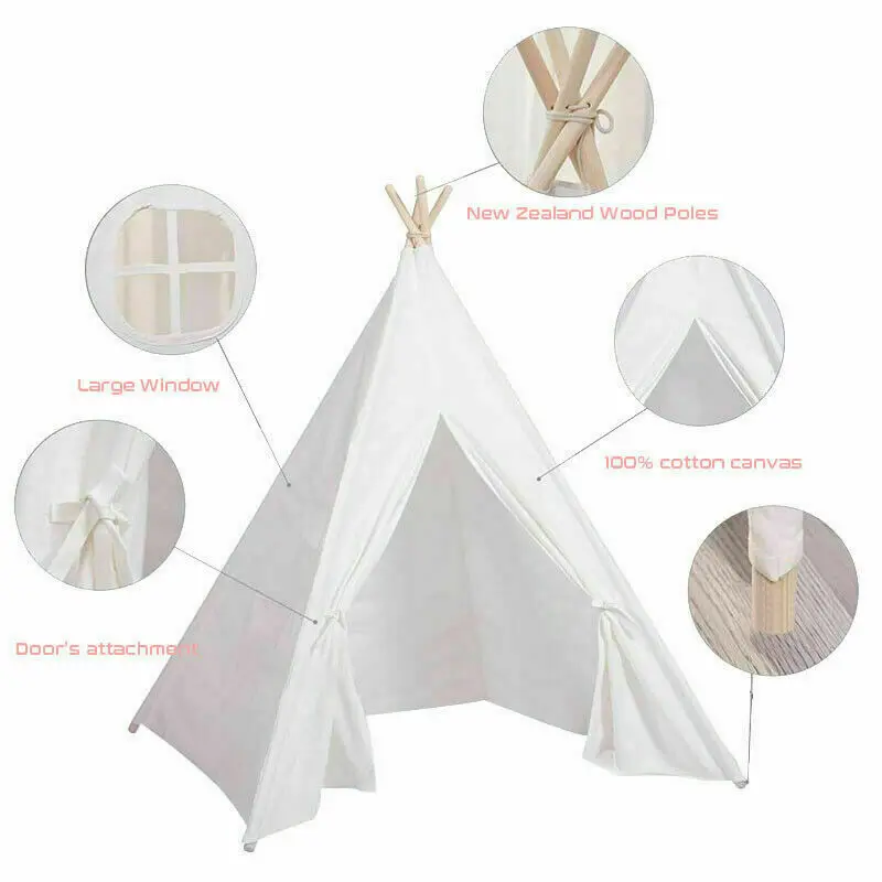 Особенности:-Красивая Игровая палатка для детей-Изготовлен из прочного и качественного хлопкового холста-Гладкая отделка деревянных палок-Окно сбоку для легкой проверки детей