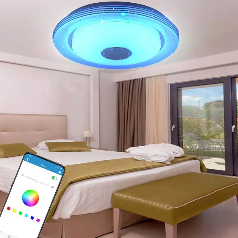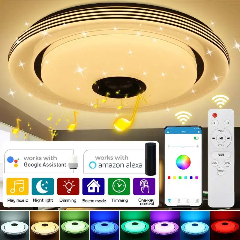 Характеристика:Он оснащен мощным динамиком, который воспроизводит музыку через bluetooth-соединение со смартфона. С помощью специально разработанного приложения светильник со смартфона может управлять цветом и яркостью лампы.Мощные светодиоды RGBW могут воспроизводить все спектральные цвета, а также производить белый светильник различной интенсивности и цветовой температуры.По сравнению с обычными светильниками Светодиодный прожектор потребляет минимальное количество электроэнергии и даже ниже энергопотребления, чем энергосберегающие лампы.【Энергосбережение 】-наш потолочный светильник для замены 100 Вт флуоресцентного трубного светильника экономит 65% вашего электрического счета. Для снижения уровня повторной стоп-сигнала с частотой Номинальный срок службы 50000 часов【Защита глаз Desigh】-нет стробоскопа, нет шума. Без бликов, не только защищает ваши глаза от суровых и бликовых огней, но и создает теплую и комфортную семейную среду для вас【Многофункциональное приложение-особенно настройка времени, установите время выключения, музыка будет сопровождать вас, чтобы заснуть, или Установите будильник, чтобы начать прекрасный день с музыкой.