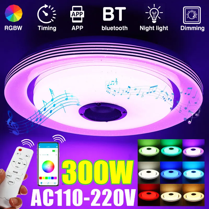 300 Вт светодиодов музыкальный потолочный светильник с Bluetooth динамиком с регулируемой яркостью дистанционное управлениеприложение для управления детской яркостью 40 см умный круглый телефон