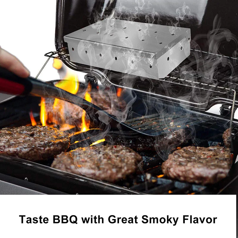 Идеальные аксессуары для барбекю: Заполните эту дымовую коробку с вашими любимыми аппетитными фишками, большими или гранулированными вкусами. Затем поместите его между источником тепла гриля и решеткой, которая произведет восхитительный дымчатый аромат для усиления эффекта гриля.