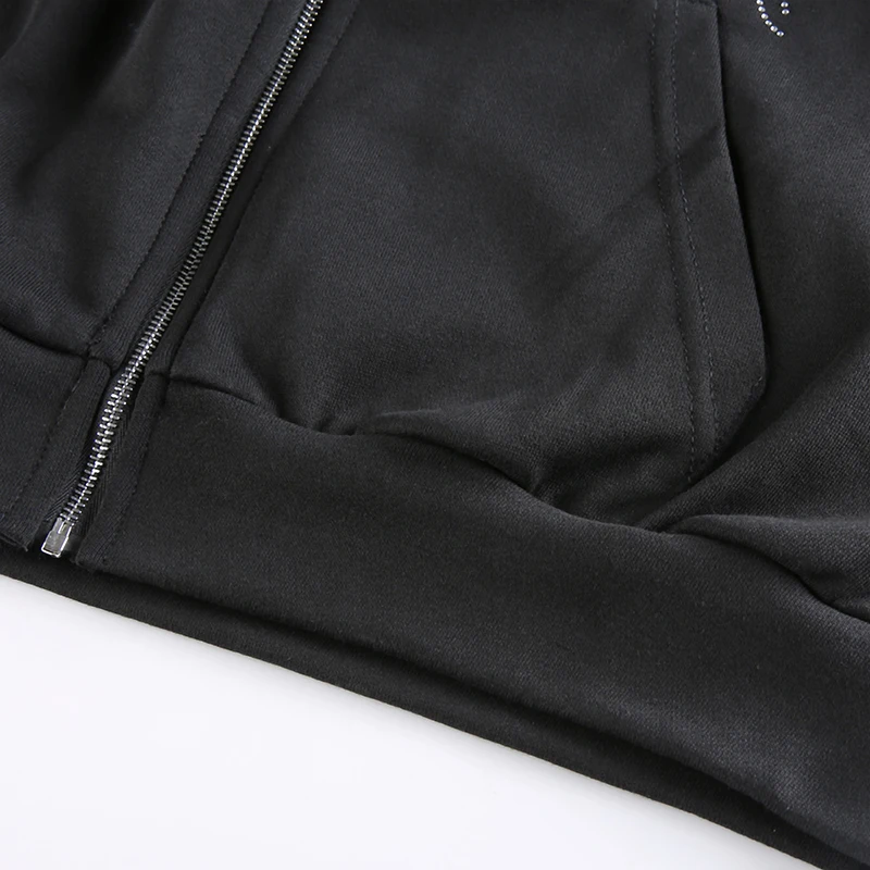 Y2K толстовка на молнии со стразами, осенние толстовки с длинным ру...