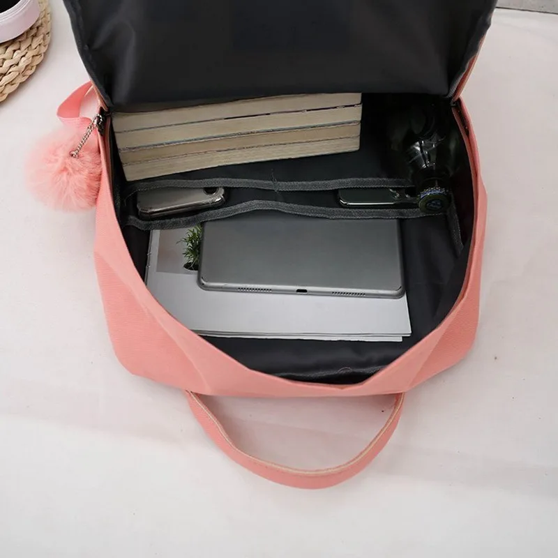 Рюкзак женский школьный из 5 предметов, вместительный ранец для подростков, Холщовая Сумка для мальчиков и девочек