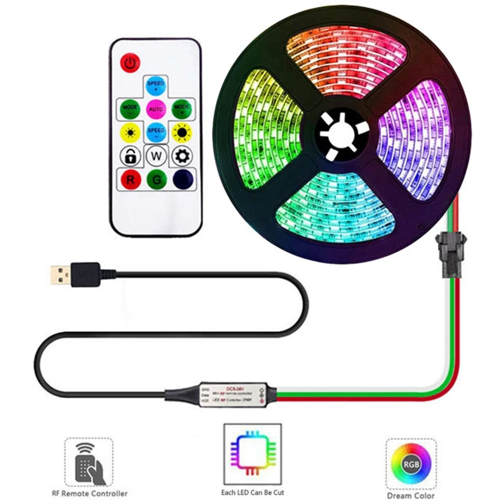 Индивидуально Адресуемая светодиодная RGB ленсветильник WS2812B WS2812 5050SMD, 5 в постоянного тока, USB, комплект с 14 клавишами и блокировкой