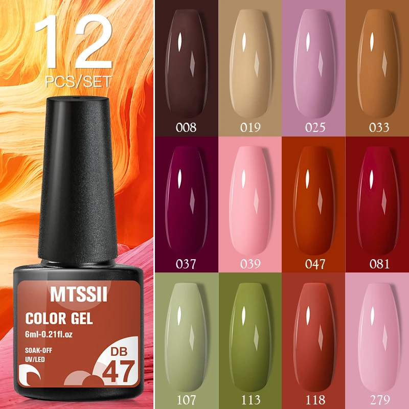 Набор цветных УФ-гель-лаков для ногтей MTSSII, 12 шт., отмачиваемый Блестящий Гель-лак, Полупостоянный базовый топ, матовые маникюрные лаки для ногтей