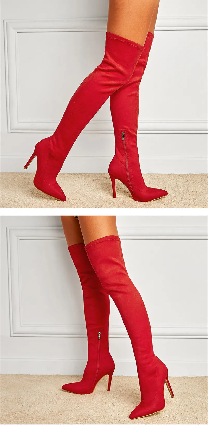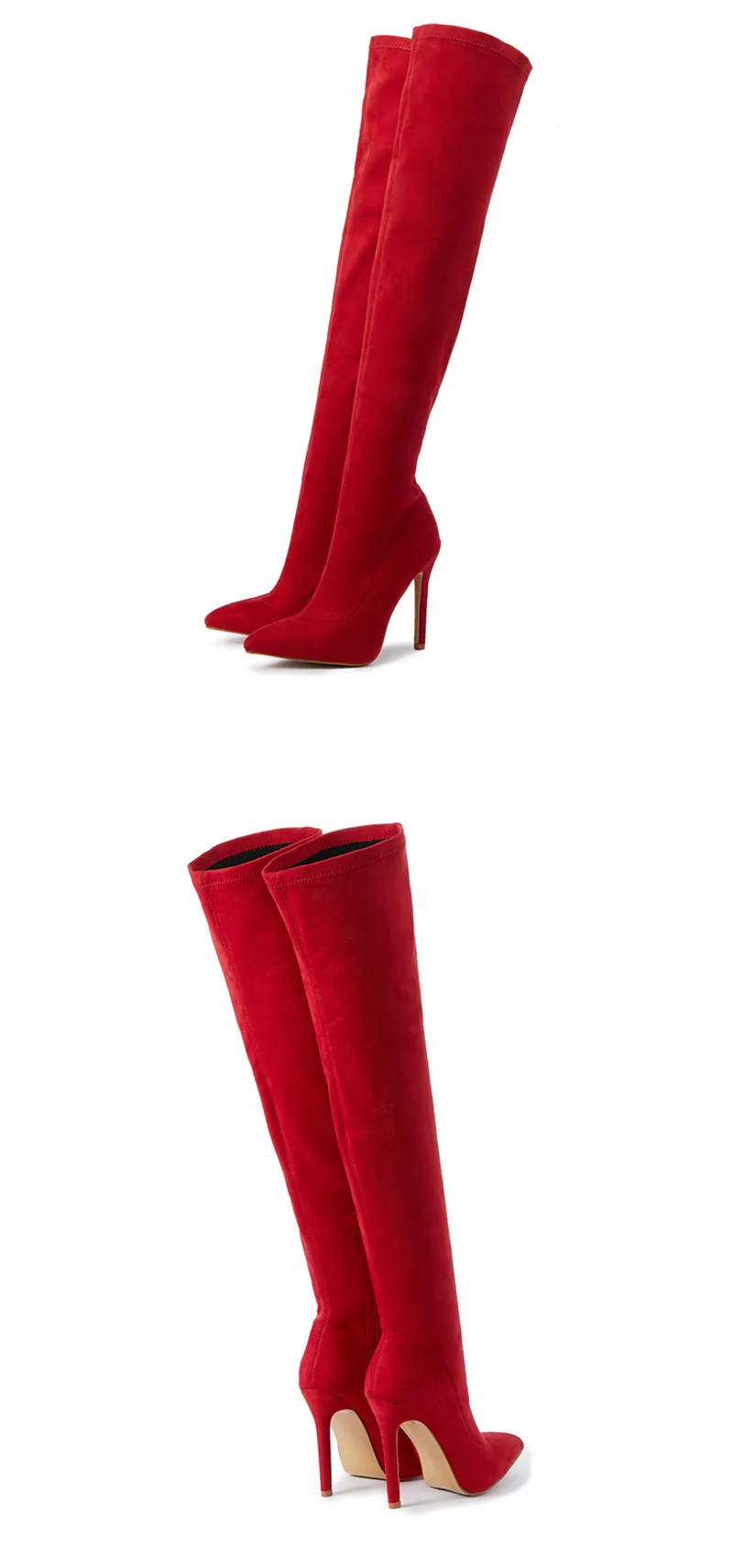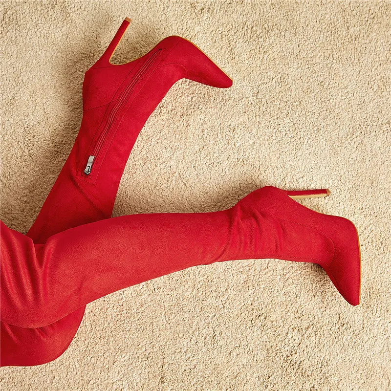 Eilykenпикантные модные ботфорты из флока с острым носком красного и черного цвета Зимние женские мотоботы на молнии и тонком каблуке
