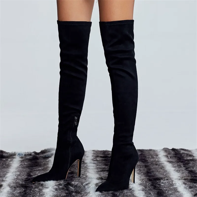Eilykenчерные облегающие высокие сапоги модные женские ботфорты на ...