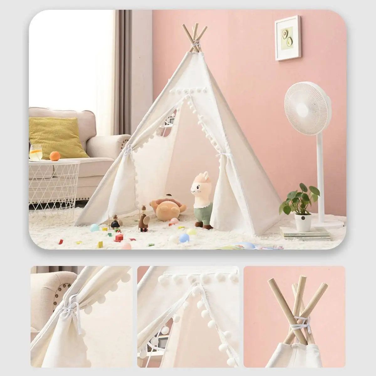 Особенности:-Красивая Игровая палатка для детей-Изготовлен из прочного и качественного хлопкового холста-Гладкая отделка деревянных палок-Окно сбоку для легкой проверки детей