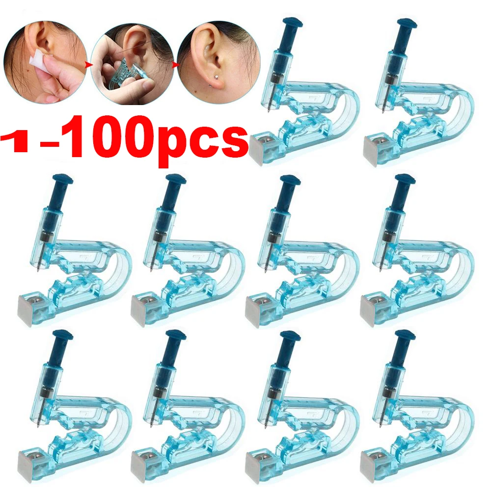Пистолет Для Пирсинга Ушей, ушей, носа, 100 шт, стерильные, одноразовые, 1-инструмент для пирсинга шт. + металлические серьги-гвоздики из нержавеющей стали