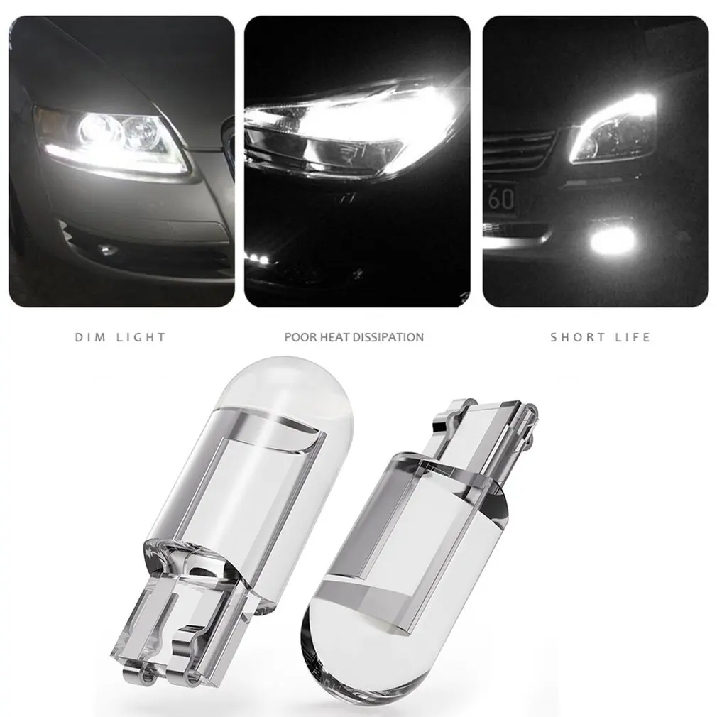 2 W5W 194 T10 стеклянный корпус Cob светодиодный автомобильная лампа 3000K Янтарный 6000 белый зеленый синий красный Клин купольный светильник белый диод