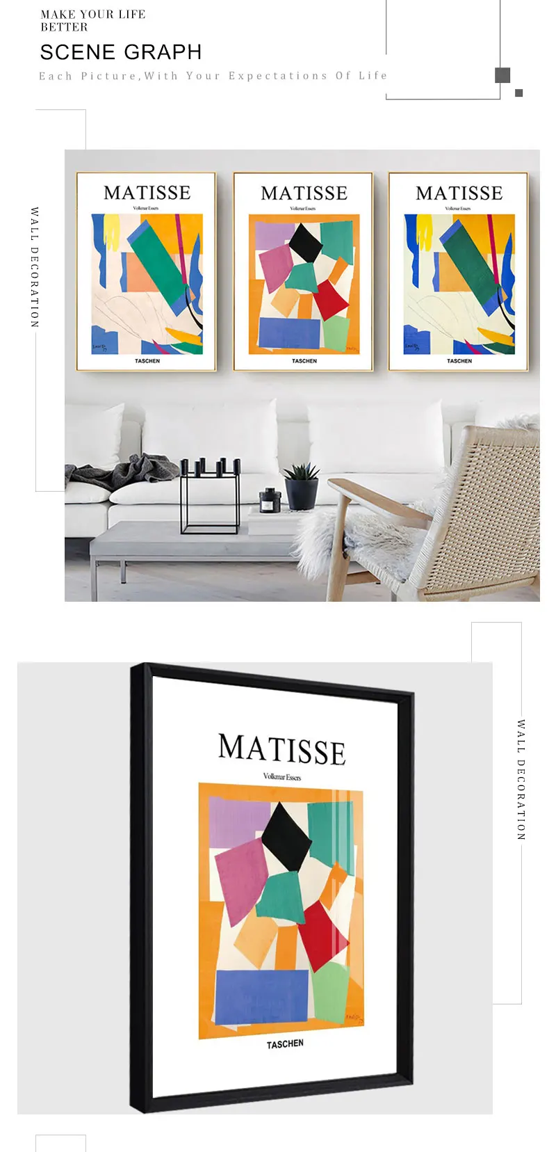 Картина с абстрактным геометрическим рисунком Матисс, настенные плакаты и принты в скандинавском стиле, украшение для гостиной, спальни