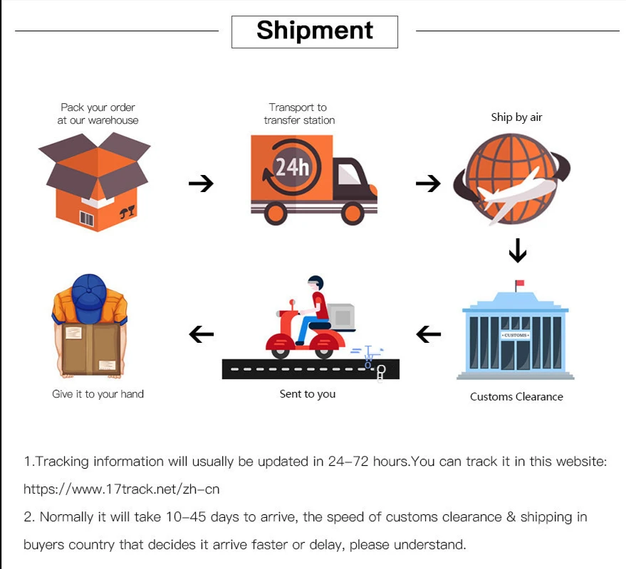 При нормальных обстоятельствах посылка, которую вы приобрели, может быть отправлена в течение 2 дней, за исключением особых обстоятельств и праздников.