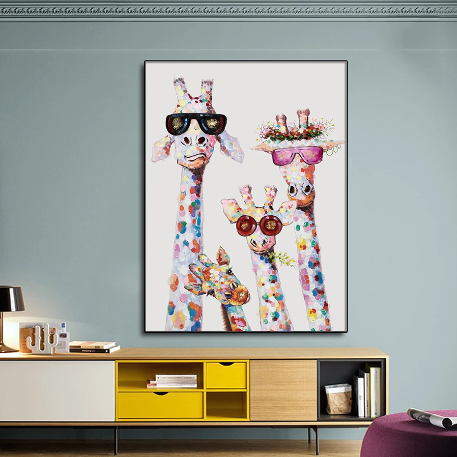 Милый крутой Жираф семья Красочный холст детская Настенная картина постер печатная картина для детской спальни украшение дома