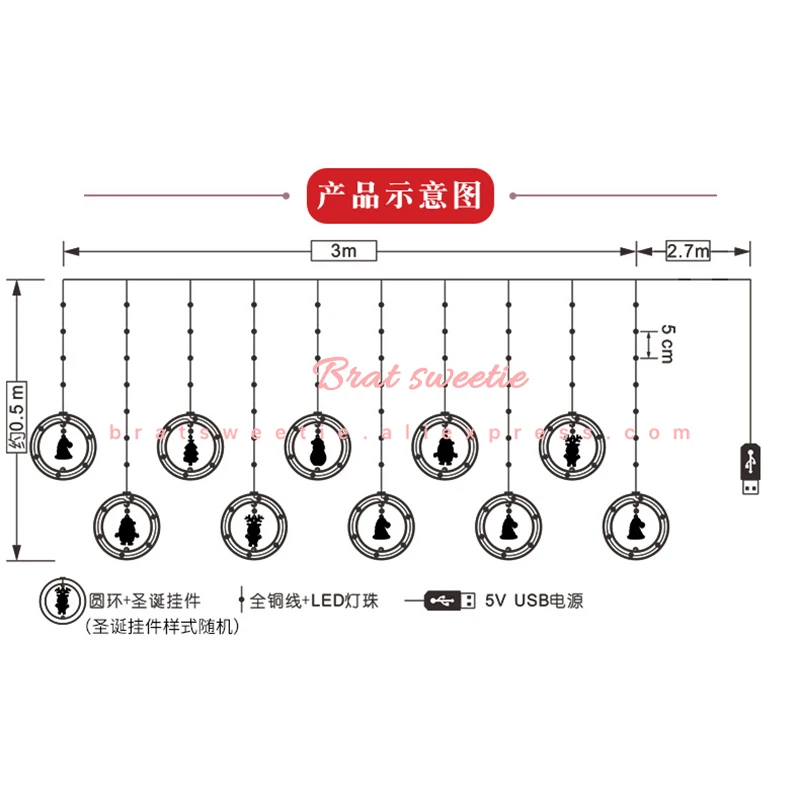 Рождественское украшение, светодиодная гирсветильник, USB занавеска...