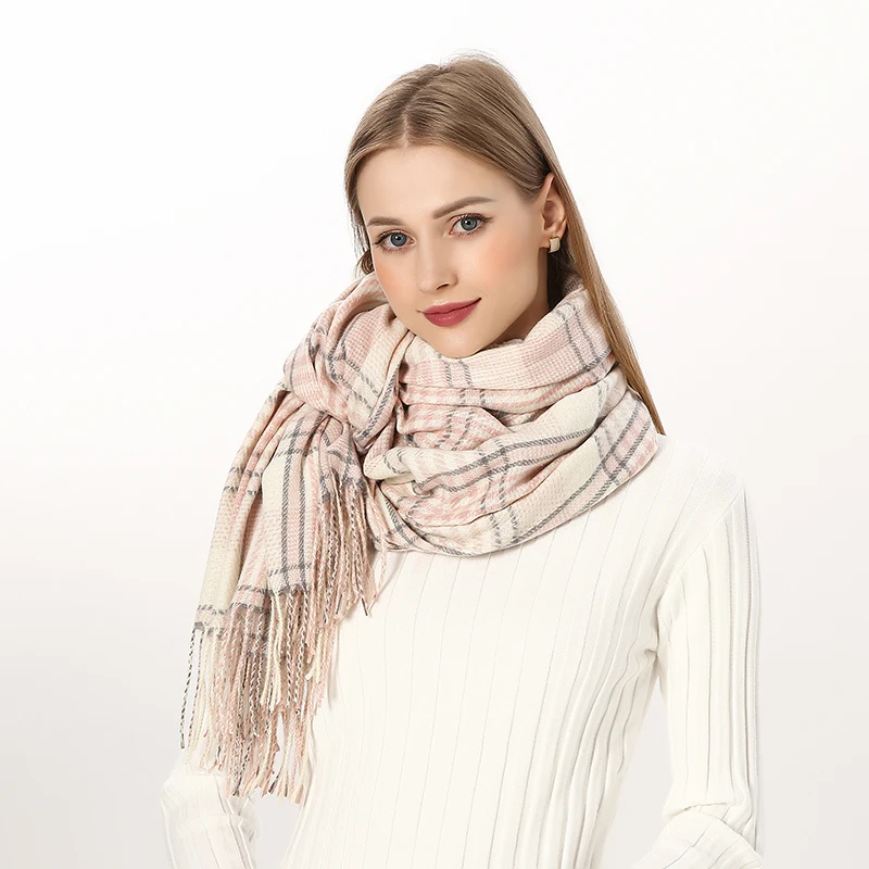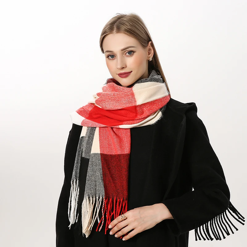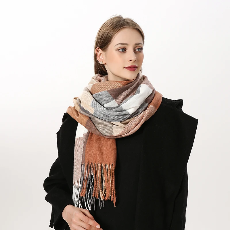 Роскошный клетчатый шарф, зимняя теплая кашемировая Женская длинная бандана, Женский фуляр из пашмины, дизайн 2021