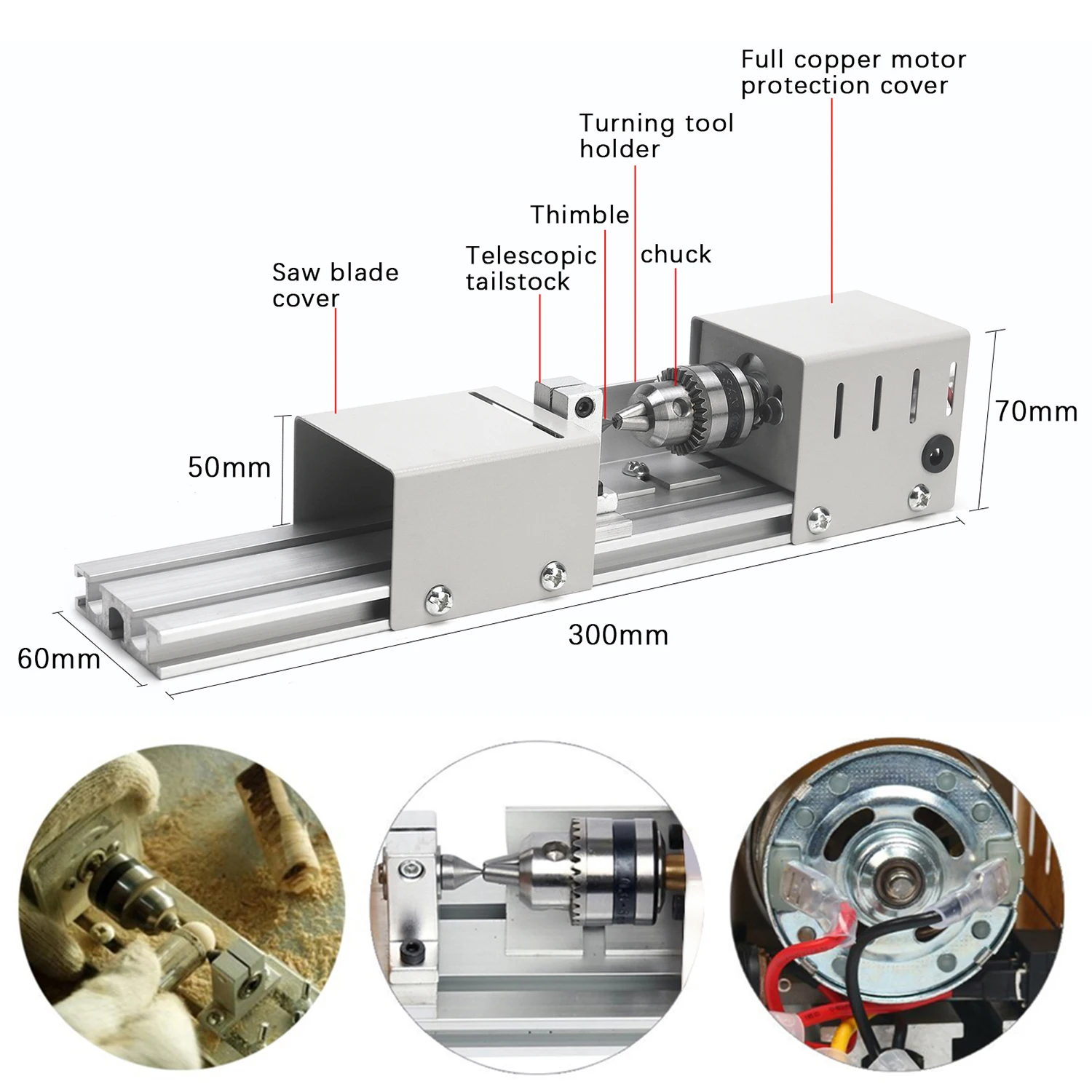 Миниатюрный токарный станок по дереву, 96 Вт, DC12-24V