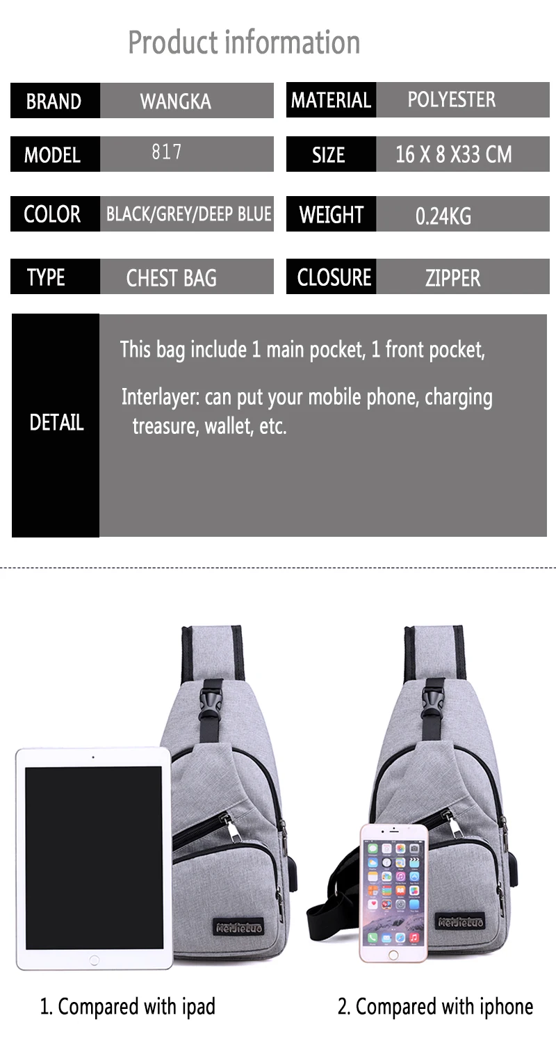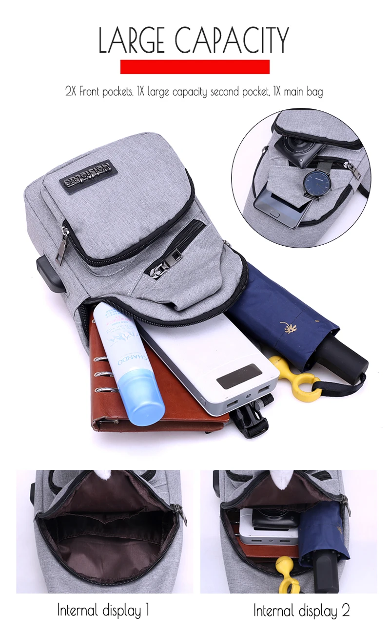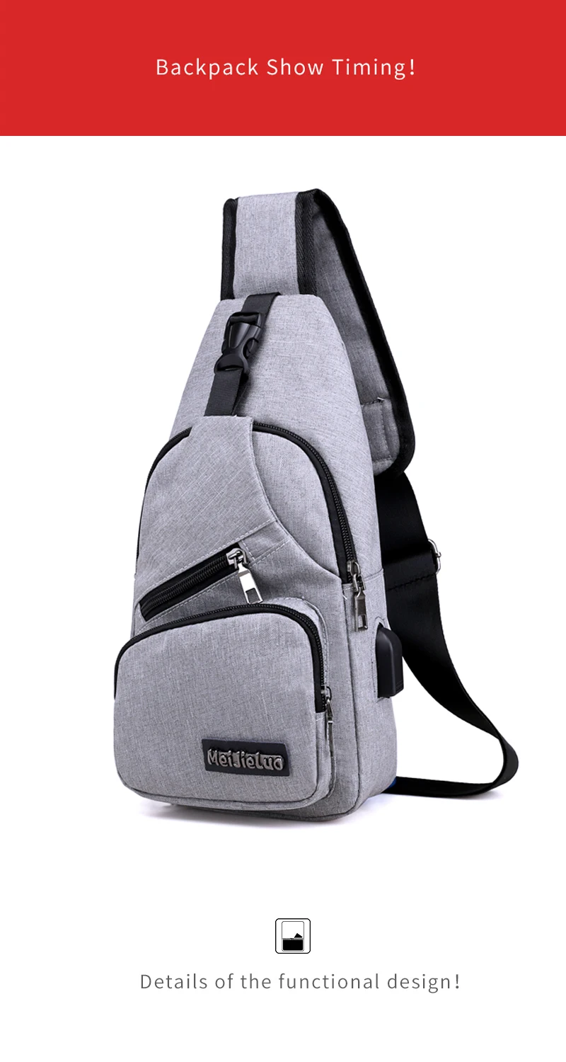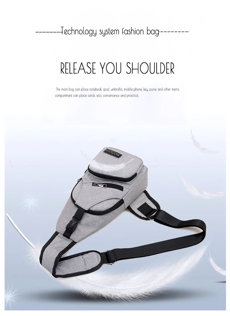 Нагрудная сумка для мужчин, многофункциональная, водонепроницаемая, с USB-разъемом