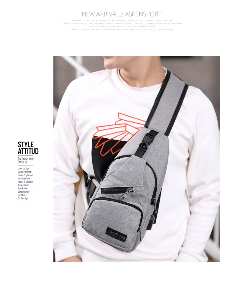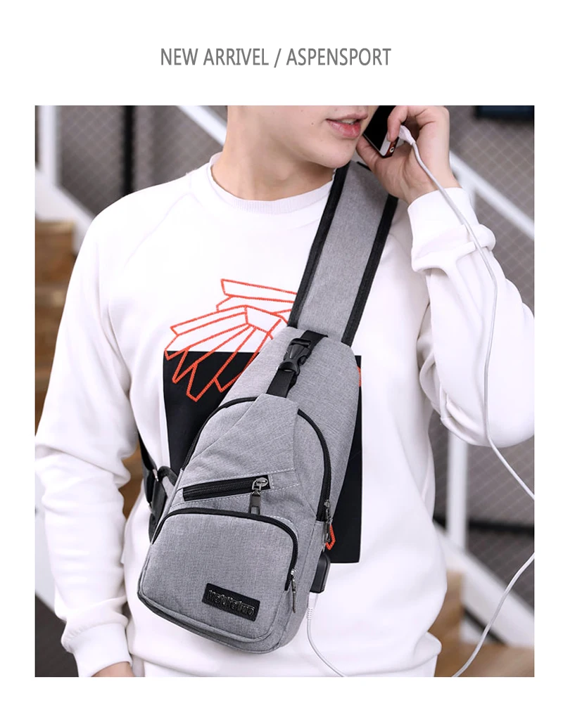 Мужская нагрудная сумка с USB-разъемом, спортивный маленький мессен...