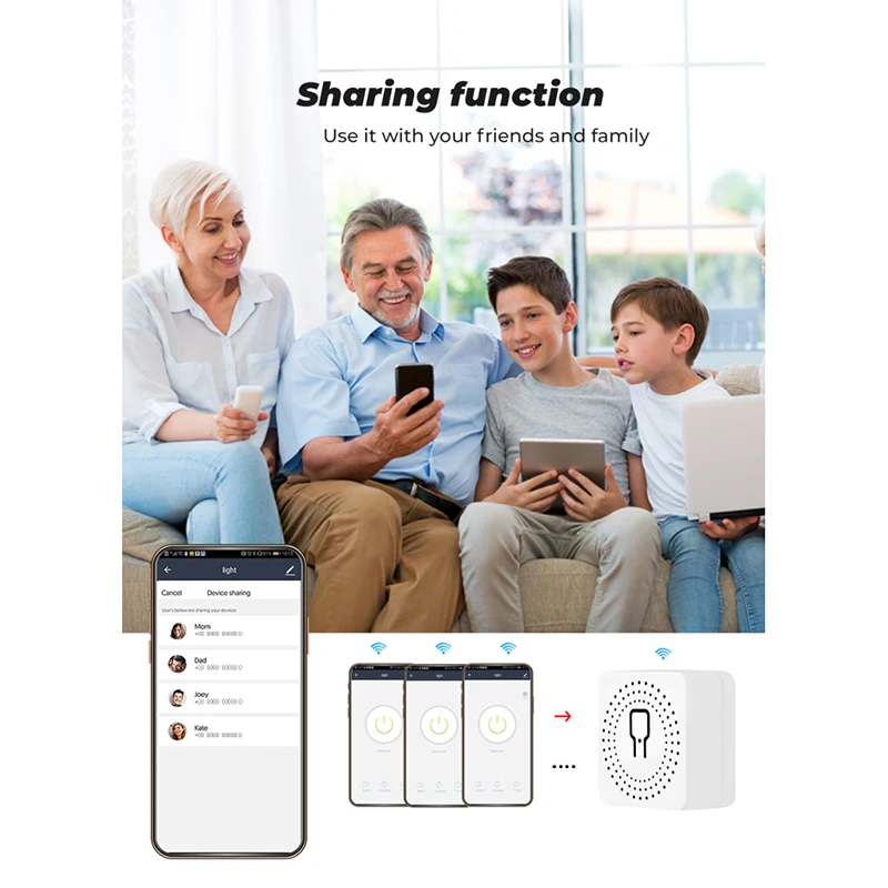 2.Управление мобильным приложением.Управляйте переключателем, синхронизацией, обратным отсчетом и другими функциями устройства через мобильный телефон 2. Голосовое управление. Поддержка голосовых помощников, таких как Tmall Wizard, Alexa, GoolHome и т. д., для реализации таких функций, как переключатели;