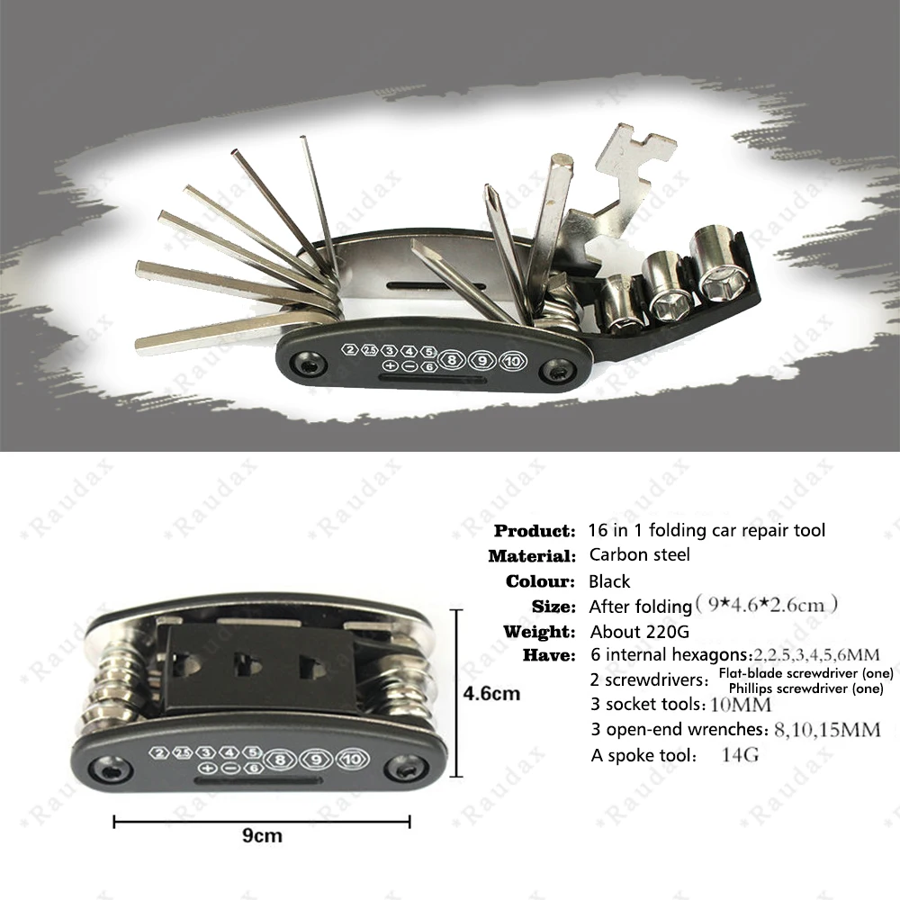 Дорожный велосипед портативный 16 в 1 Многофункциональный набор инструментов для ремонта горный велосипед шестигранный ключ спицы отвертка инструмент для ремонта велосипеда