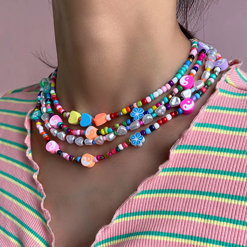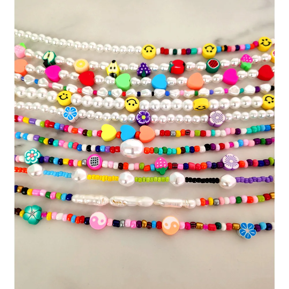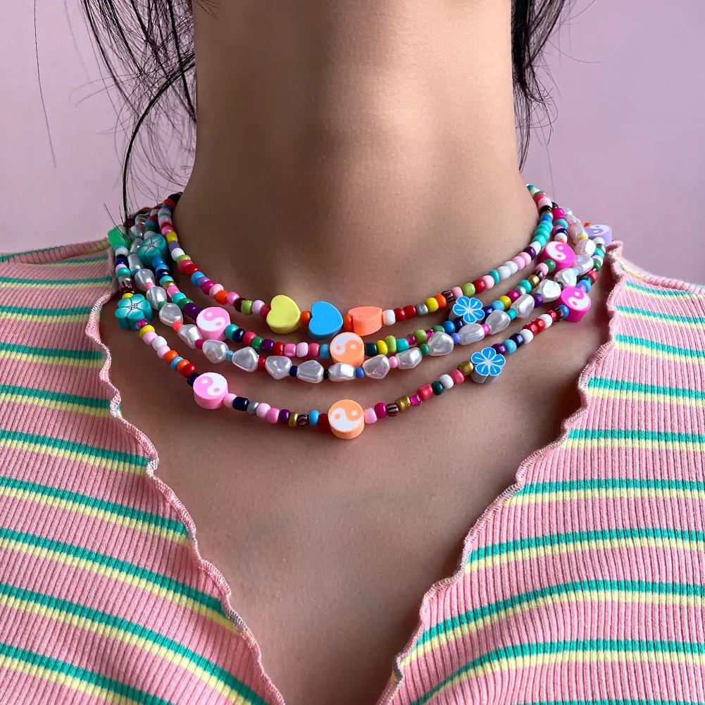 Корейский цветок фрукты Радуга Мягкая Керамика ожерелье из бисера для женщин красочный шнурок бисер чокер жемчужное ожерелье Y2K Бохо ювелирные изделия