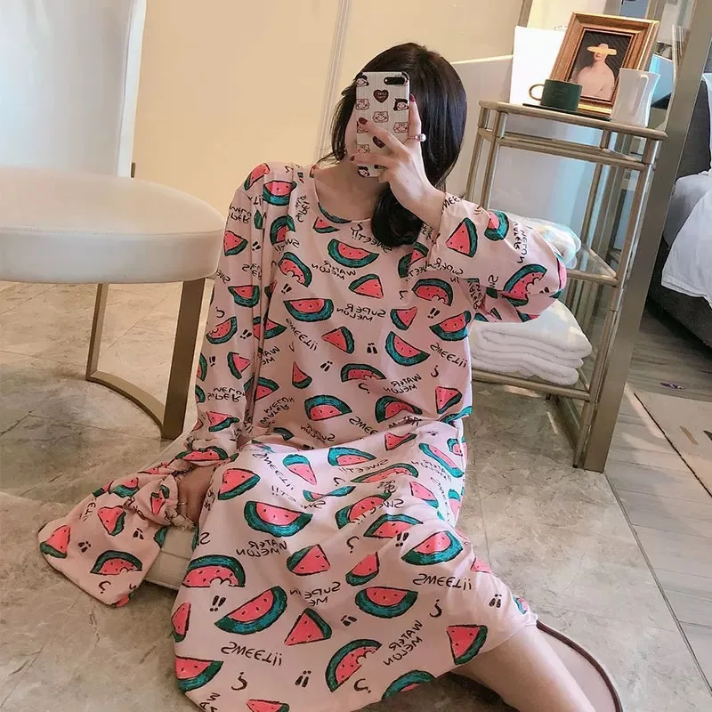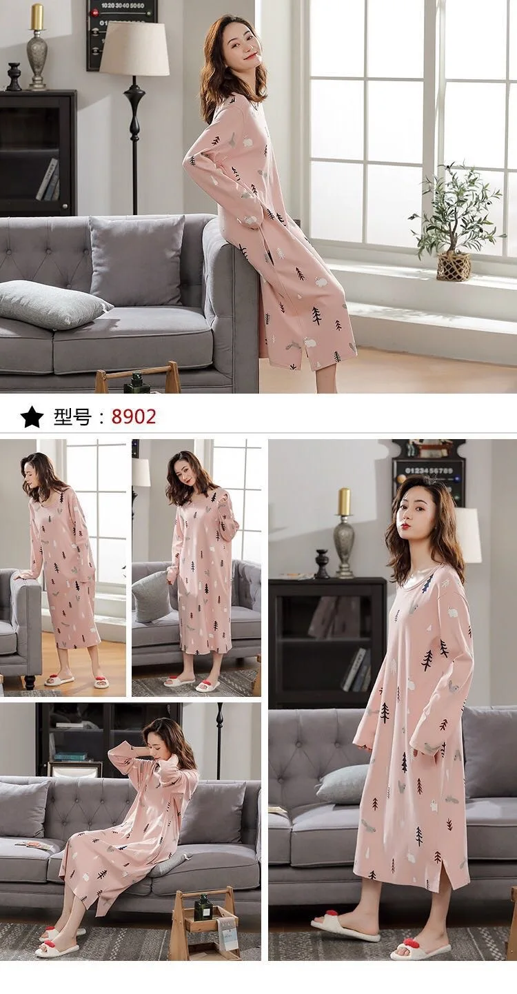Весенне-осенняя новинка Женская ночная рубашка с длинным рукавом, н...