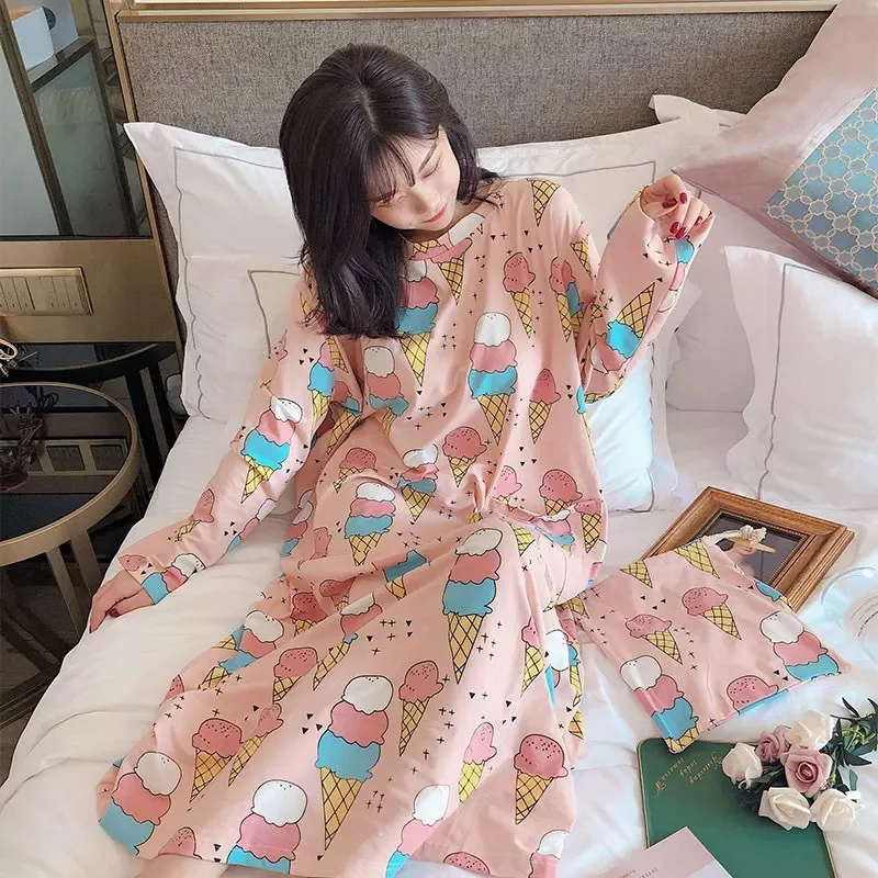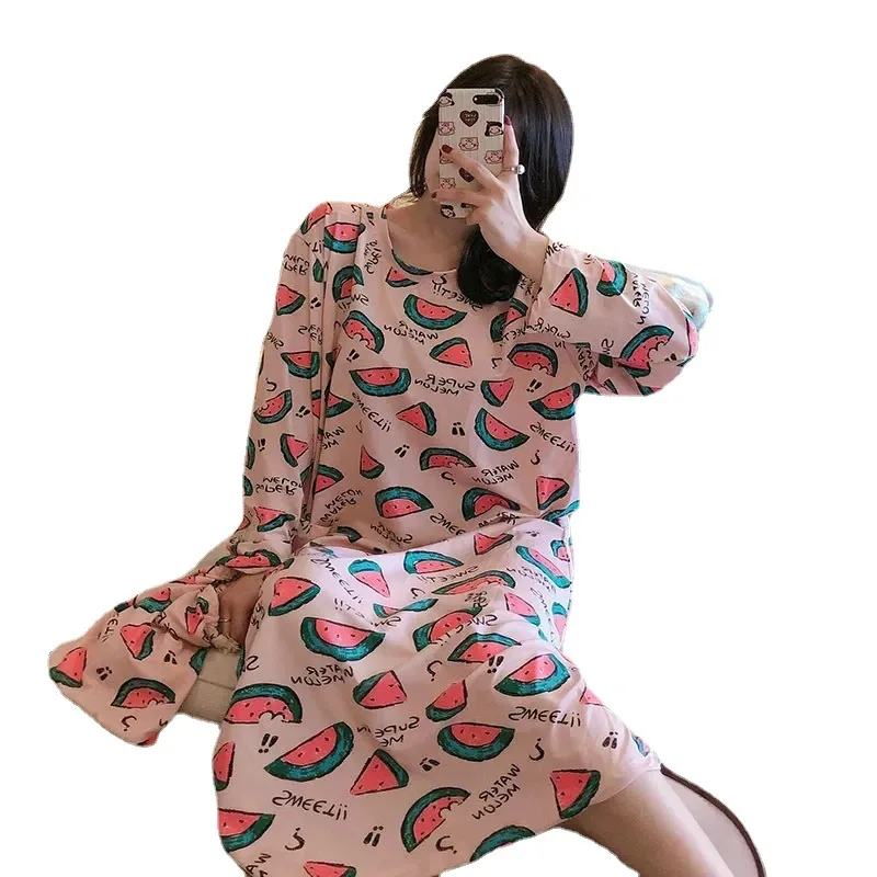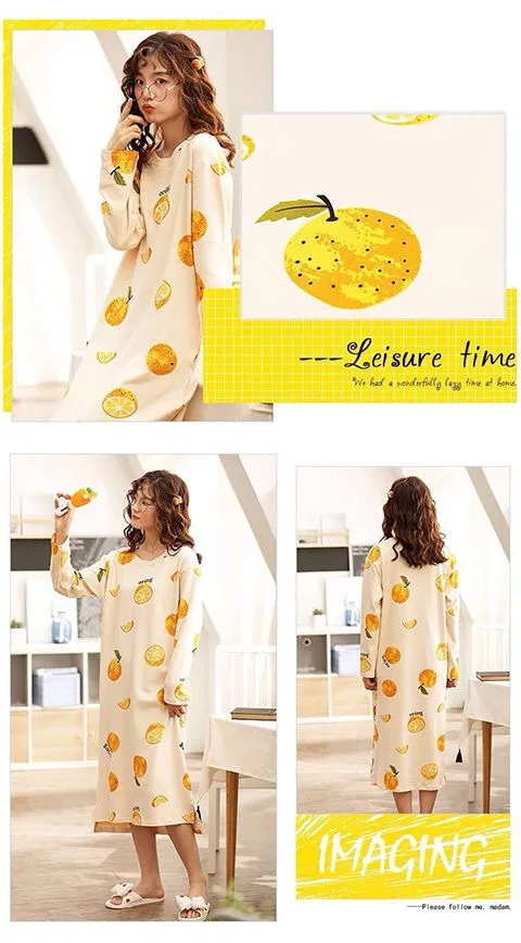 Женские осенне-зимние ночные рубашки с длинным рукавом в Корейском ...