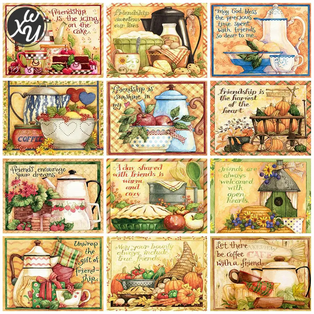 Алмазная живопись, фруктовый пейзаж, квадратная Круглая Мозаика, искусство, кухня, полная дрель, наборы для вышивки крестиком для взрослых, аксессуары, домашний декор
