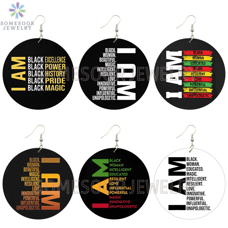 SOMESOOR черные качественные образованные женские деревянные висячие серьги с принтом необычные мощные высказывания петли Висячие Ювелирные изделия Подарки