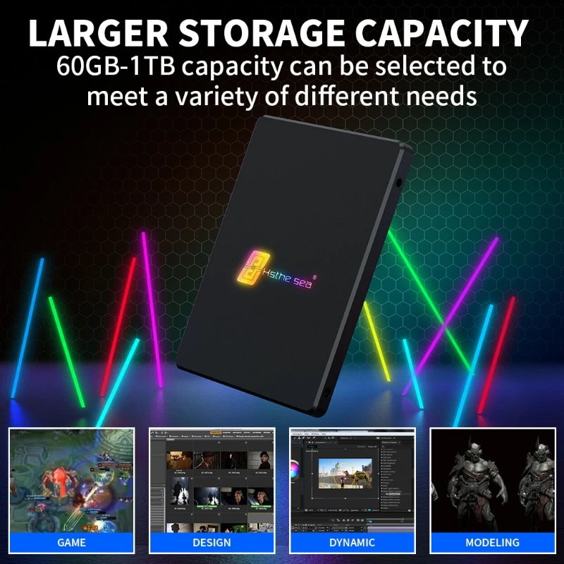 Многоцветные твердотельные жесткие диски, излучающие светильник, надежны и долговечны и могут быть широко совместимы с настольными компьютерами и ноутбуками.