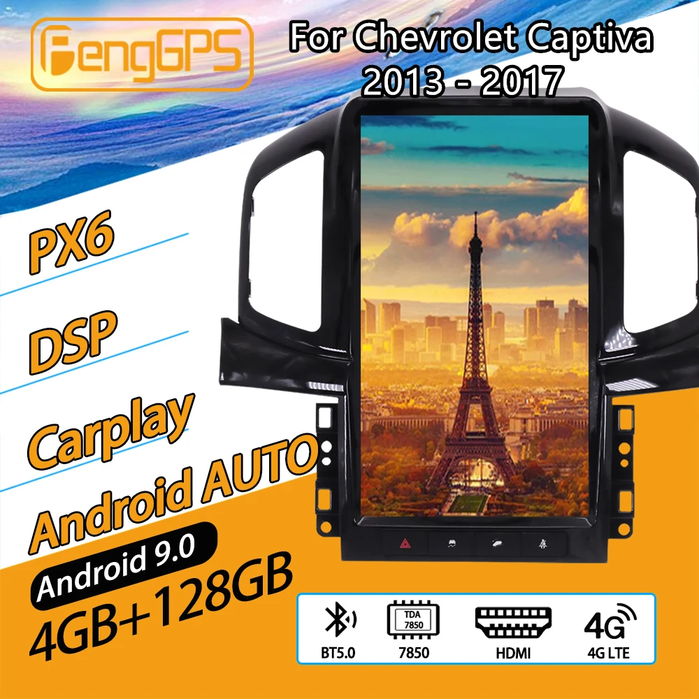 Автомагнитола для Chevrolet Captiva C140 2013-2017, Android, стерео, мультимедийный плеер, 2 Din, Авторадио, GPS-навигатор, экран Тесла, PX6