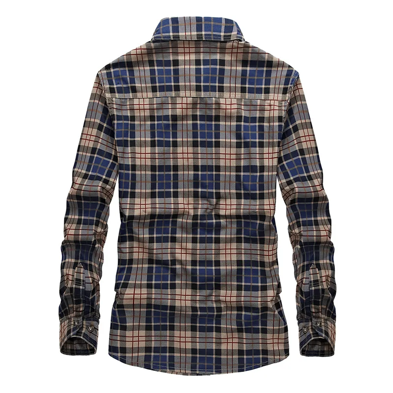 Мужские рубашки в клетку в стиле милитари из 100% хлопка; Сезон весна-осень; Повседневная Облегающая рубашка с длинными рукавами; Camisa Masculina; Фланелевые рубашки в деловом стиле