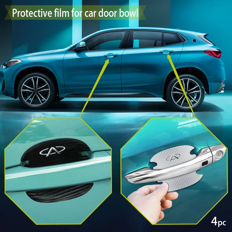 4 шт. автомобильный значок, наклейка на дверную ручку, наклейка, защитная пленка для Chery Tiggo 2 3 8 qq iq blossom fulwin arrizo a1 5, автомобильные аксессуары