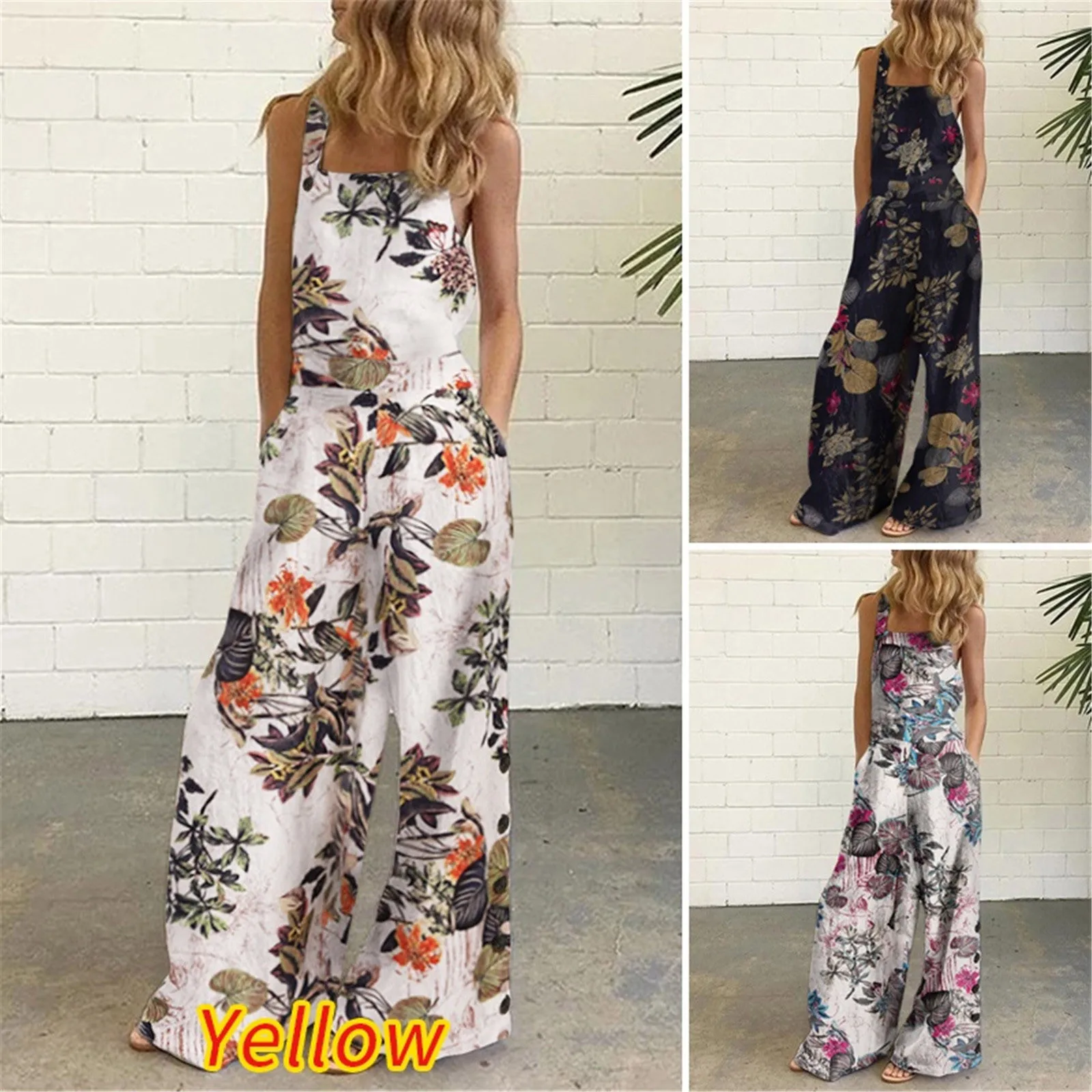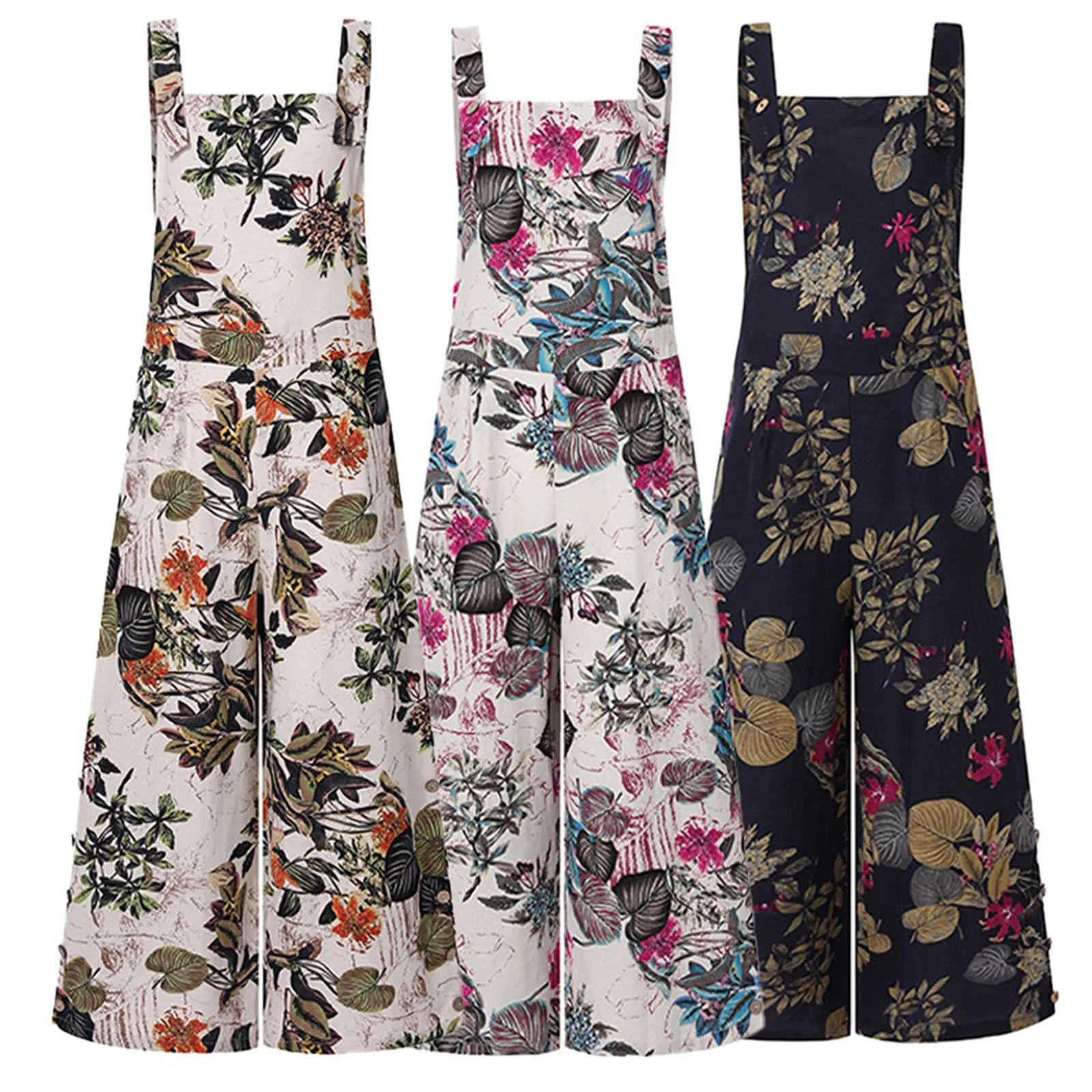 Женский комбинезон без рукавов, повседневный комбинезон с цветочным принтом, Летний комбинезон с широкими штанинами