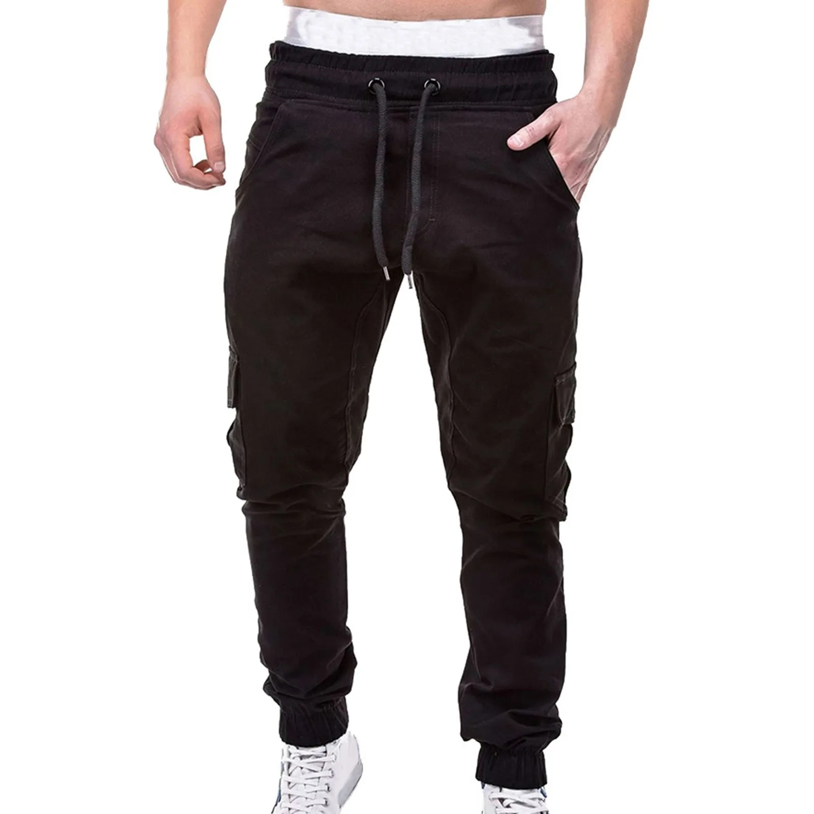 Мужские модные однотонные повседневные спортивные брюки с карманами