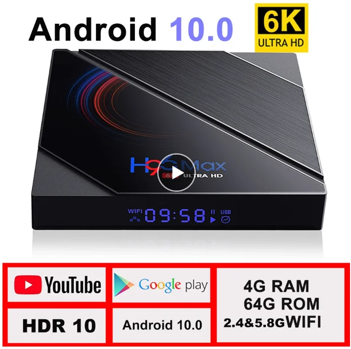 Приставка Смарт-ТВ H96 Max, 4 ядра, Android 10,0, Wi-Fi