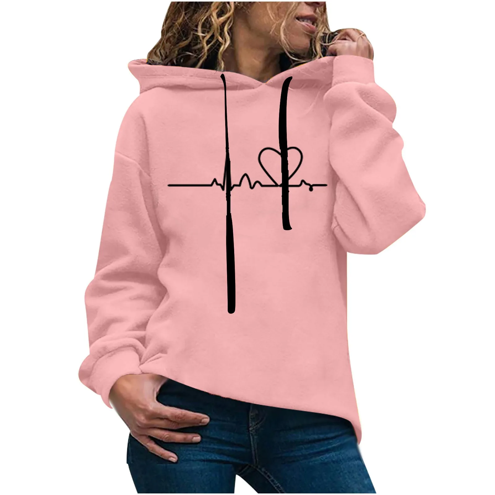 Толстовка Женская с длинным рукавом, круглым вырезом и принтом сердечек