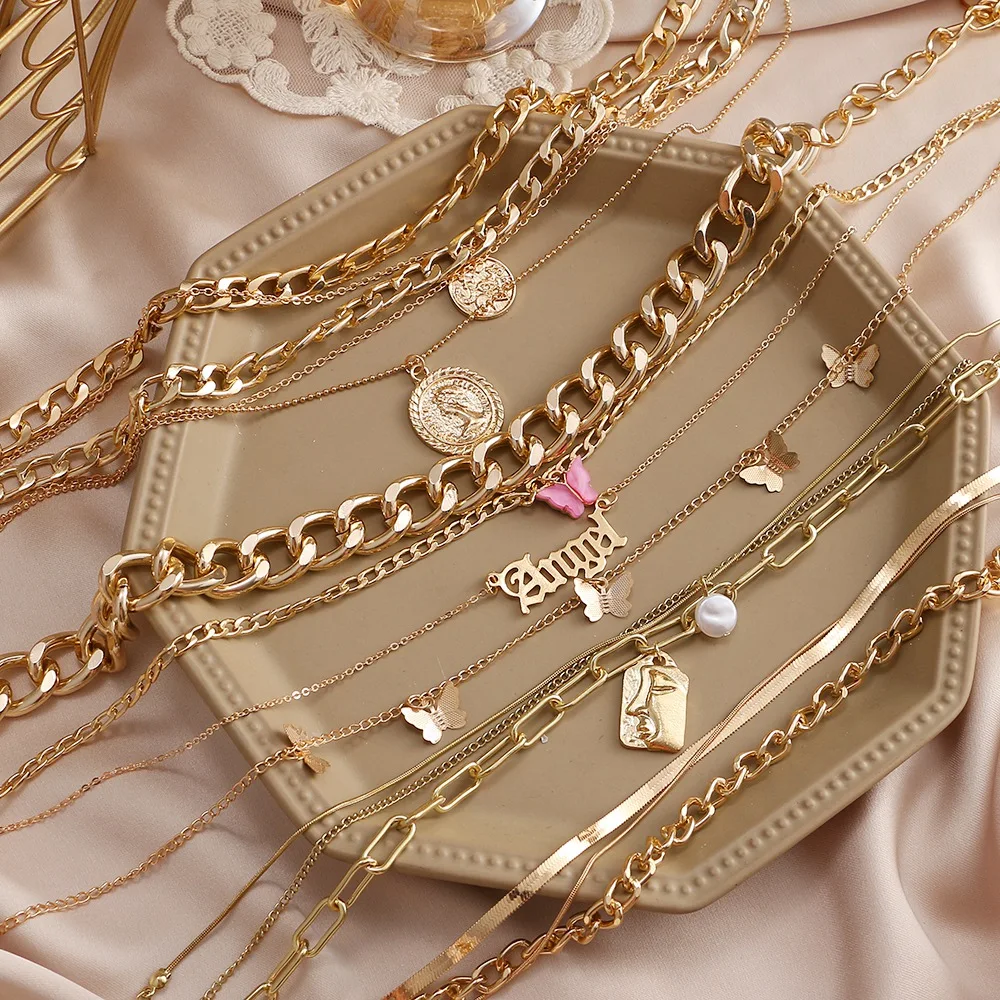 VKME цепочка на шею женская Женское многослойная золотая цепочка с кулоном в виде монеты бабочки массивное Ювелирное цепь чокер на шею украшения ожерелье подвеска на шею кулоны и подвески украшения 2021 бижутерия